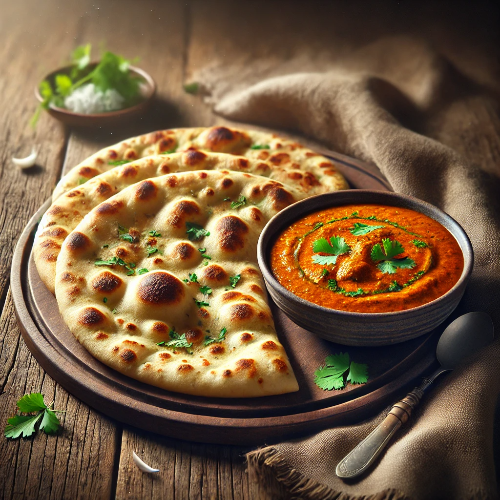 반죽에 치즈를 채워 구워낸 난으로, 부드럽고 고소한 맛이 일품입니다. - 버터 난 (Butter Naan):