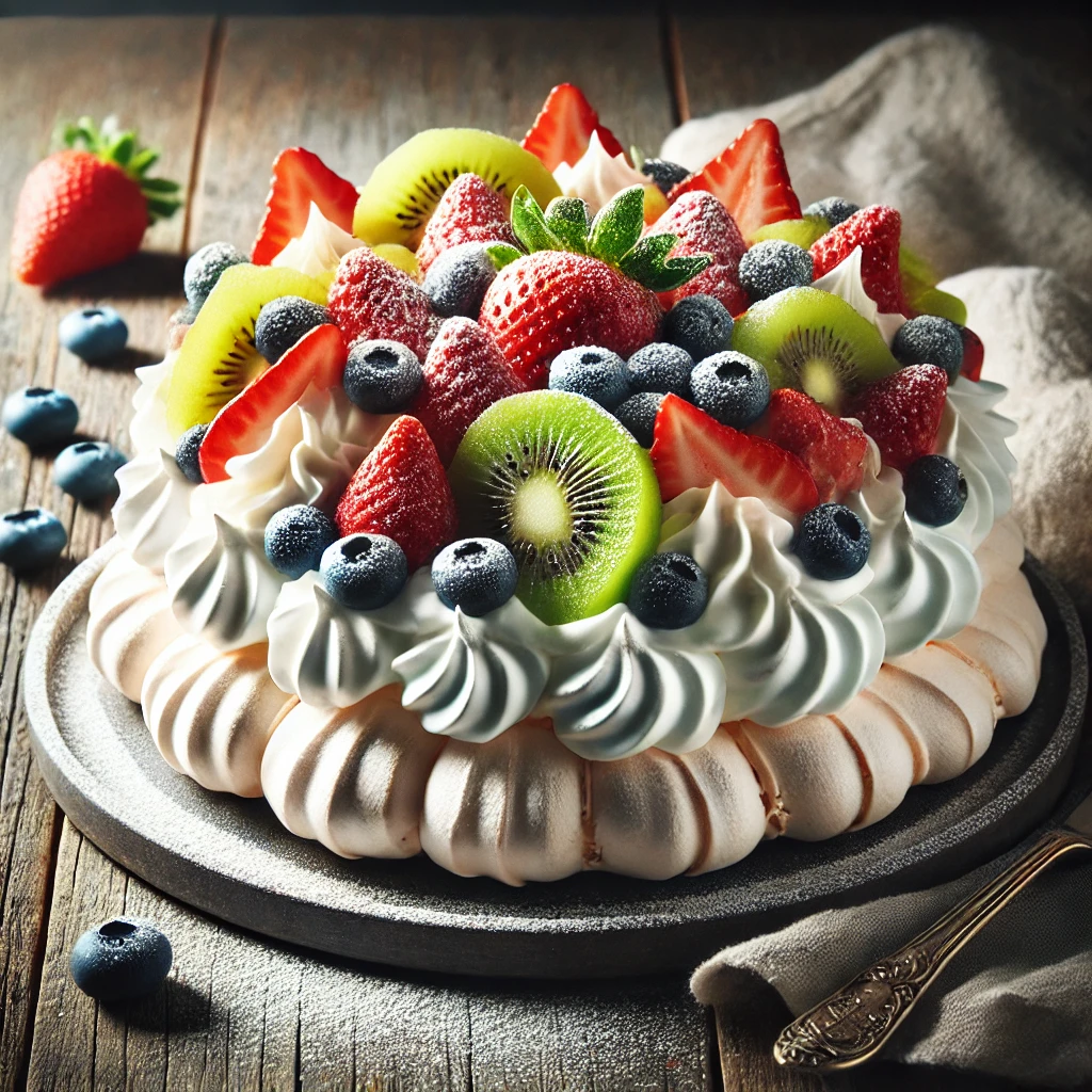 파블로바 케이크는 머랭을 기본으로 만들어진 디저트로, 겉은 바삭하고 속은 부드러운 마시멜로 같은 질감을 자랑합니다. 상단에는 휘핑크림과 신선한 과일이 얹혀져 달콤함과 상큼함의 완벽한 조화를 이룹니다. 이 디저트는 독특한 식감과 화려한 비주얼 덕분에 여름철이나 특별한 날의 디저트로 인기가 높습니다.