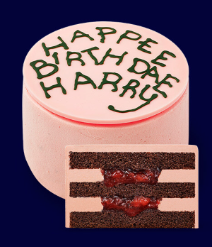 영화 속 해리포터의 생일을 축하하는 장면을 그대로 담아낸 핑크색 크림 케이크로, 초콜릿 브라우니와 딸기잼이 완벽하게 어우러집니다.