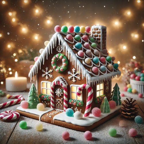 벽과 지붕 모양으로 진저브레드를 구워 조립하고, 사탕과 아이싱으로 꾸며 크리스마스 장식용 하우스를 만듭니다. - 선물: