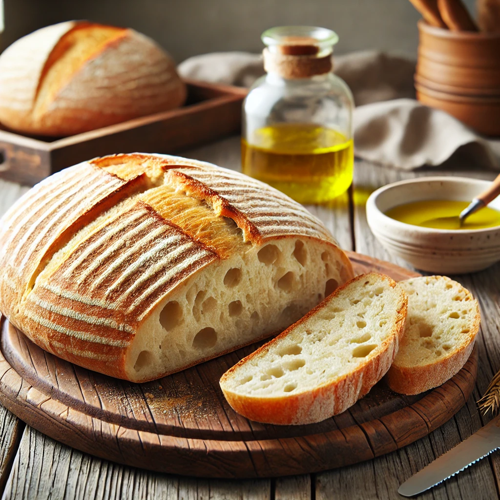 치아바타는 이탈리아에서 유래한 전통적인 빵으로, 넓고 평평한 모양, 바삭한 껍질, 공기 방울이 가득한 쫄깃한 속이 특징입니다. 이탈리아어로 ‘치아바타(Ciabatta)’는 슬리퍼를 의미하며, 빵의 납작하고 넓은 형태에서 이름이 유래되었습니다.