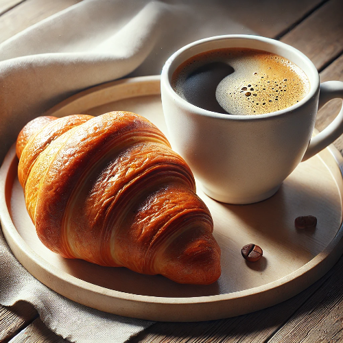 크로와상은 프랑스를 대표하는 전통 페이스트리로, 결이 살아있는 바삭한 껍질과 부드러운 속이 특징인 빵입니다. 이름은 프랑스어로 ‘초승달’을 뜻하며, 독특한 모양에서 유래했습니다. 크로와상은 풍부한 버터 향과 고소한 맛을 자랑하며, 한입 베어 물면 겹겹이 층이 이루어진 독특한 식감이 입안을 가득 채웁니다.