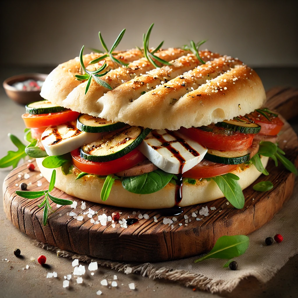 포카치아는 크림 수프나 토마토 수프와 잘 어울리며, 부드러운 속이 수프의 풍미를 한층 더 높입니다. - 샌드위치: