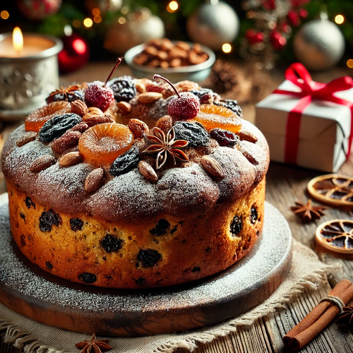건포도, 말린 체리, 오렌지 껍질, 호두, 아몬드 등 다양한 건과일과 견과류가 듬뿍 들어갑니다. - 따뜻한 향신료 풍미: