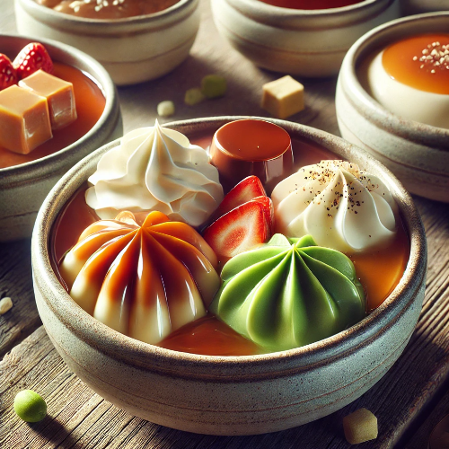 푸딩은 크리미하고 매끄러운 식감이 특징으로, 입안에서 부드럽게 녹아드는 경험을 제공합니다. - 다양한 맛과 종류